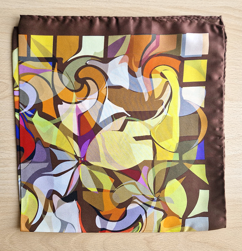 Foulard in seta 50×50 cm con disegni geometrici